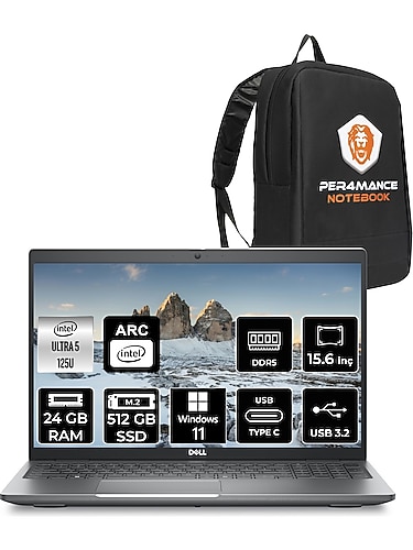 Dell Latitude 5550 Intel Core Ultra 5 125U 24GB 512GB SSD 15.6" Fhd Windows 11 Home Taşınabilir Bilgisayar
