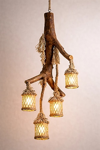 Doğal Armut Ağacından El Yapımı Rustik Avize – Özgün Tasarım
