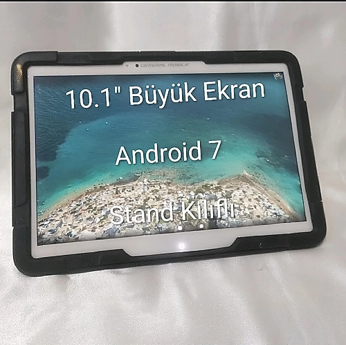General Mobile E-Tab 5 Tablet 10.1 inç Ekran. Silikon kılıfı ve Stand mevcuttur. 1.66GHz 8 çekirdek işlemci, 32GB Hafıza, 2GB Ram mevcuttur. Android versiyonu 7.1.2 dir. YouTube Kids sorunsuz çalışır.YouTube kendi uygulamasında çalışmaz sadece tarayıcı üzerinden çalışır. Play Store'dan uygulama ve oyun indirir.Şarj cihazı yoktur. Piyasada Samsung Şarj cihazı olarak bilinen micro usb telefon şarjı ile şarj edilir.