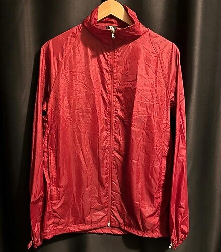 Efsane Kırmızı Vintage Rüzgarlık Deandoe orijinal Gizli Yaka Kapşonlu, Parlak Desenli Nylon, Mükemmel Kondisyon!