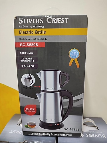 muhteşem çaycı 2200 w çelik çaycı üst 1.0 lt alt 2.3 lt kapasite sahip sıfır ürün garantisiz ithal