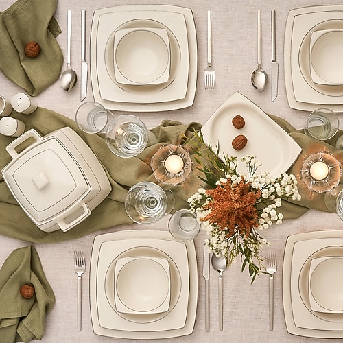 Emsan Oya Porselen 60 Parça 12 Kişilik Kare Yemek Takımı