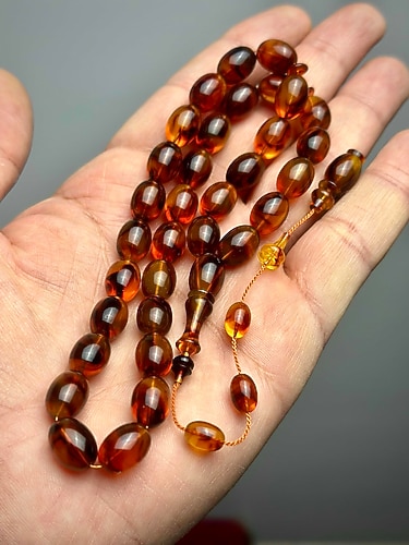1930’lu yılların başlarında üretilmiş, gerçek Katalin malzemeden el işçiliğiyle yapılmış bu antika tespih; sadece bir obje değil, aynı zamanda geçmişin zarafetini günümüze taşıyan bir mirastır.