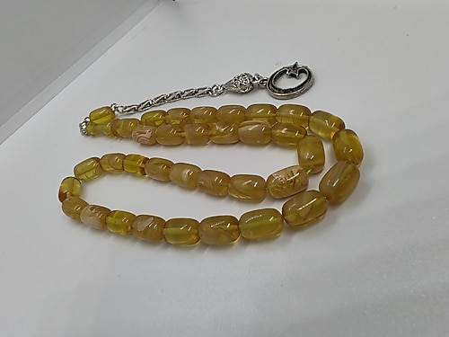 7*11 mm Ölçülerinde Atölye İşi Gümüş Kaplama İmitasyon Ayyıldız Püskülle Dizayn Edilmiş İp Yolları Kırmızı Eskitme Yapılmış Sıkma Kehribar. Alıcısına Şimdiden Hayırlı Olsun.