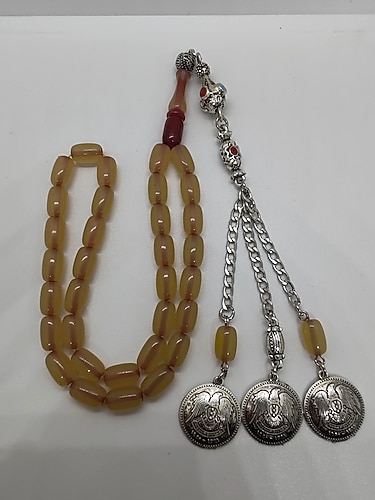 7*11 mm Ölçülerinde Atölye İşi Gümüş Kaplama İmitasyon 3 Sallantılı Mineli Halep Püskülle Dizayn Edilmiş 2 Yedek Habbeli Eskitme Yapılmış Sıkma Kehribar. Alıcısına Şimdiden Hayırlı Olsun.