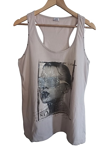 F&F Blue Marka Bayan Tshirt: Lekesi ve yırtığı yoktur. Yeni gibidir. Kol oyuntusunda metal süsleme, ön resim baskısında parlak pullar vardır. %100 kotondur. 46 bedendir. Ancak iade olmadığından verdiğim ölçülere göre alım yapınız. Boy 71 cm.-Koltuk altından itibaren boyu 49 cm.-Koltuk altından koltuk altına tek taraftan eni 50 cm. (Esneme 6 cm.)-Orta kısımdan tek taraftan eni 50 cm. (Esneme 5 cm.)-En altından tek taraftan eni 60 cm. (Esneme 6 cm.)-Omuz askı eni 4 cm.-Kol oyuntusu 24 cm. (Esneme 5 cm.)'dir. #tshirt #bayan tshirt #kadın tshirt #penye bayan tshirt #penye kadın tshirt