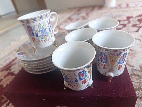 ceyizden gelen ürünler sadece fincanlarin ayaklarında ufak pütürler var o görsellerde göstericem