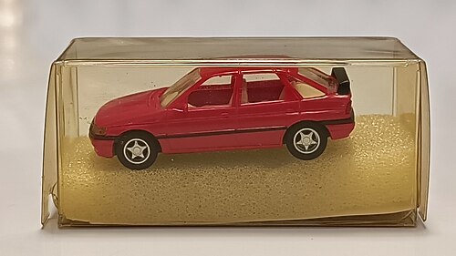90'lı yılların Avrupa yollarındaki en bilinen aile otomobillerinden biri olan Ford Escort'un beşinci nesli (MKV), "Ghia" donanımının getirdiği lüks ayrıntılarla Busch'un 1:87 ölçekli üretimiyle öne çıkıyor. Kırmızı rengin enerjisini taşıyan bu model, Escort'un o dönemki yuvarlak hatlı tasarımını ve kompakt sedan yapısını yansıtıyor. Busch, aracın karakteristik ön farlarını, ızgarasını ve Ghia donanımına özgü jant kapaklarını bu mikro ölçekte oldukça başarılı bir biçimde aktarmış. Orijinal kutusu yerine alternatif bir kutu içinde özenle koruduğum bu parça, sıfır durumdadır.