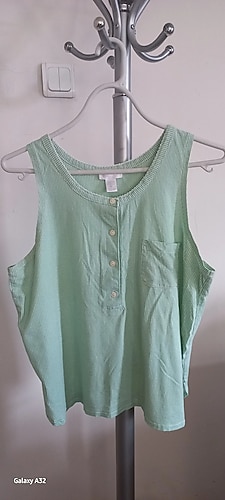 Freddini Marka Bayan Bluz: Önde ufak sarı lekesi var. Yırtığı yoktur. Önü düğmeli ve soldan tek ceplidir. İki yandan yırtmaçlıdır. Çok az giyilmiş iyi durumdadır. Az esnektir. %70 Koton, %30 Polyesterdir. M bedendir. Ancak iade olmadığından verdiğim ölçülere göre alım yapınız. Boy 59 cm.-Koltuk altından itibaren boyu 37 cm.-Koltuk altından yırtmaca kadar boy 30 cm.-Koltuk altından koltuk altına tek taraftan eni 53 cm. (Esneme 5 cm.)-Ortak kısımdan tek taraftan eni 55 cm. (Esneme 5 cm.)-En alt (Yırtmaç başlangıcından düz ölçümle) tek taraftan eni 53 cm. (Esneme 5 cm.)-Omuz 5 cm.-Yaka açıklığı 6 cm.-Kol oyuntusu 27 cm. (Esneme 3 cm.)-Düğme 1 cm.-Cep 8.5x9 cm.'dir. #bayan bluz #kadın bluz #askılı ekose bluz #kadın ekose bluz #bayan ekose bluz #cepli bayan bluz #cepli kadın bluz