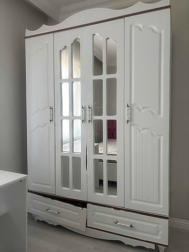 Bir çekmecesi kırık, kaplaması soyuluyor, ayağında çatlak var