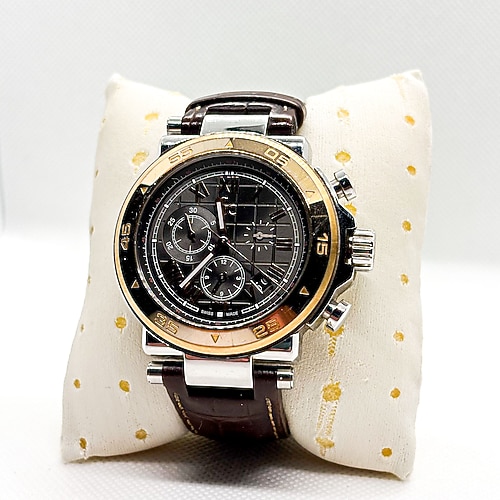 Guess Collection Gc Gcx90005g2s Erkek Kol Saati: Kahverengi Şıklık Bileğinizde Az ve temiz kullanılmış bu Guess Collection Gc Gcx90005g2s erkek kol saati, kahverengi deri kordonu ve paslanmaz çelik kasasıyla stil sahibi erkekler için ideal bir seçenek. 44 mm kasa çapı ile dikkat çeken bu saat, modern ve güçlü bir duruş sergiliyor. Öne Çıkan Özellikler: Şık Tasarım: Kahverengi deri kordon ve paslanmaz çelik kasanın uyumu, saatin her ortamda şık görünmesini sağlar. Dayanıklı Yapı: Çizilmelere karşı yüksek dirençli safir cam ve 10 ATM su geçirmezlik özelliği sayesinde günlük kullanımda ve hafif su aktivitelerinde gönül rahatlığıyla kullanabilirsiniz. Hassas Zaman Tutma: Quartz mekanizması sayesinde her zaman doğru ve güvenilir zaman gösterimi sunar. Fonksiyonel Detaylar: Kronometre ve takvim gibi özellikleri ile sadece bir saatten fazlasını sunar, günlük ihtiyaçlarınızı karşılar. Bu Guess Collection kol saati, hem klasik hem de modern tarzları bir araya getirerek, her kombinize kolayca uyum sağlayacak zamansız bir aksesuar.