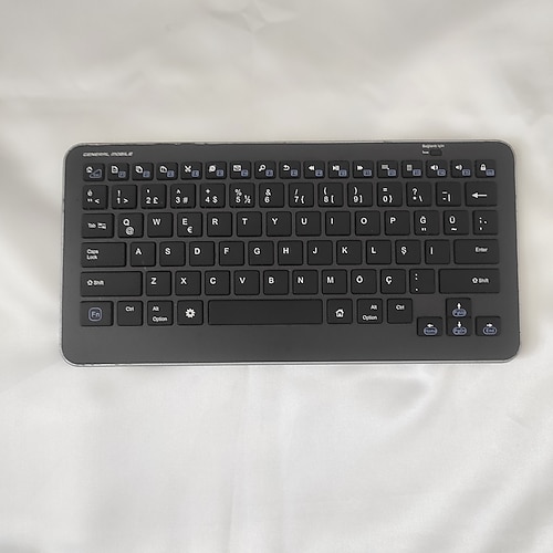 General Mobile Bluetooth Q Klavye. Klavye şarjlı dır Micro usb telefon şarjı ile şarj edebilirsiniz. Televizyon, Telefon, Tablet ve Bilgisayar gibi tüm Bluetooth ile çalışabilen cihazlar ile uyumludur. Sadece klavye vardır.