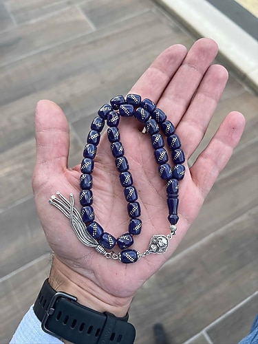 925 ayar özel tasarım gümüş püsküllü, gümüş çakımlı, kapsül kesim simli katalin tesbih.