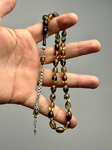 - 7,5x10,5mm habbe ölçülerinde - Harika hare yapısına sahip - 925 ayar gümüş püsküllü - Yeni döküm sıkma kehribar tesbih