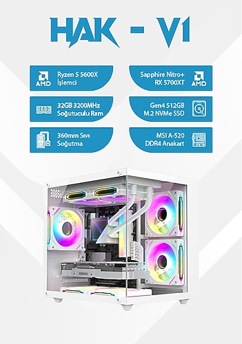 HAK-V1 | Ryzen 5 5600X 32GB RAM RX5700XT 512GB NVMe SSD Oyun Bilgisayarı
