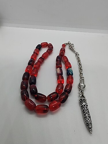 7*11 mm Ölçülerinde Atölye İşi Gümüş Kaplama İmitasyon Mermi Model Püskülle Dizayn Edilmiş Hareli Sıkma Kehribar. Alıcısına Şimdiden Hayırlı Olsun.