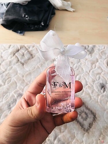 F&M yazılı etiket sökülebilir, beyaz kurdeleli, içinde ince detaylar bulunan pastel pembe hediye şişesi. 15 adet mevcut küçük şirin hoş bazılarında gül suyu var boşaltıp veya o şekilde de gönderebilirim 15 tane fiyatıdır biz toplu almıştık 200 tane elimizde kaldı 15 adeti işine yarayan alabilir