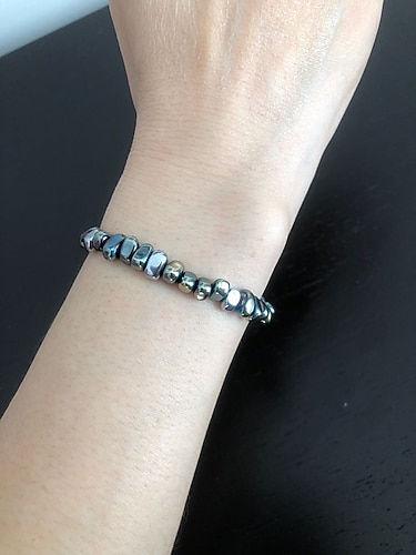 Hematit boncuk ve paraşüt ipi kullanılarak yapılmıştır. Asansör kapamalı olduğu için her bileğe uygundur. İade ve değişim yoktur.