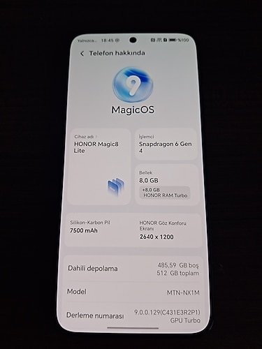 8/512, 7500Mah Batarya 66watt Hızlı Şarj.