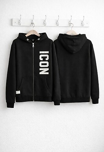 Ürün ICON marka, siyah renktir. Fermuarlı, kapüşonlu hoodie modelidir. ✔️ Az kullanılmıştır. ✔️ Yırtık, sökük veya leke yoktur. ✔️ Baskı ve fermuar sorunsuzdur. 📏 Beden: L/XL uyumludur 🎨 Renk: Siyah 📦 Özenle paketlenerek gönderilecektir. Gerçek ürün fotoğraflarıdır.