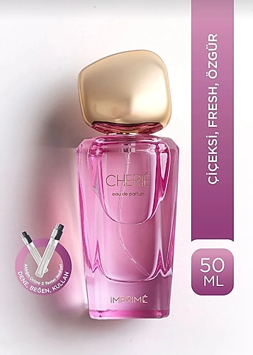 Cherie, özgür ve enerjik turunçgil notalarının, şehvetli ve cesur çiçeksi notalar ile buluşturan meyveli çiçeksi kadın parfümüdür. Sıcacık bir yaz günü, deniz kenarında mükemmel bir kumsalda geçireceğiniz tatilinize eşlik edecek neşeli ve canlı bir koku. Sulu ve lezzetli meyveli notalarının tropikal havası, yasemin, şakayık ve müge çiçeklerinin sınırları zorlayıcı çiçeksi notaları ile devam ediyor. Taban notalarında yer alan meşe yosununun nemli ve yoğun dokunuşları, amberin sıcak ve kalıcı etkisi ile teninizde hayat buluyor.