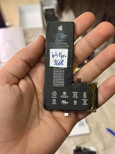 iPhone 11 Pro için %68 kapasiteye sahip siyah batarya. Cihazın güç ihtiyacını karşılamak için uygun yedek parça.
