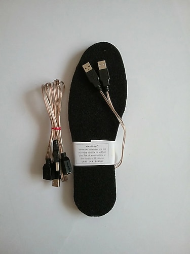 45/46 numara Isıtıcılı Tabanlık. Uç ve topuk kısmında kesme payı var. Makasla ayak ölçünüze uygun şekilde keserek yaklaşık bir numara küçültebilirsiniz. Montunuzun cebinizdeki bir power bank(5V/2A) ile saatlerce ayaklarınızı ısıtabilirsiniz. 120 cm iki adet uzatma kablosu var. Kabloları kıyafetinizin içinden geçirerek yürürken ya da motora veya bisiklete binerken kullanabilirsiniz. Ofis ya da evinizde otururken 5V/2A bir cep telefonu adaptörü ile de kullanabilirsiniz. İlk çalıştırmada ısınma süresi yaklaşık 15 dakikadır. 40-45 derece sabit sıcaklık verir.