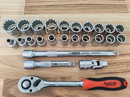 SIFIRDIR. "LOKMALAR = 8-den 28-e kadar 21 adet lokma vardır." 1/2 İNC 12 KÖŞE-DİR. "LOKMALAR 12 KÖŞE OLDUĞU İÇİN SIYIRMA YAPMAZ." İçindekiler fotoda görülmektedir. AŞAĞIDA BELRTİLDİĞİ GİBİ İZELTAŞ VE RİCO MARKALARDIR. CIRCIR VE KOLLARI RİCO MARKADIR. RİCO YERLİ MALI VE DİĞERİ GİBİ ÇOK KALİTELİ MARKADIR. LOKMALARIN 3 TANESİ -8-9-25-HARİÇ İZELTAŞDIR. FOTODA GÖRÜLMEKTEDİR.