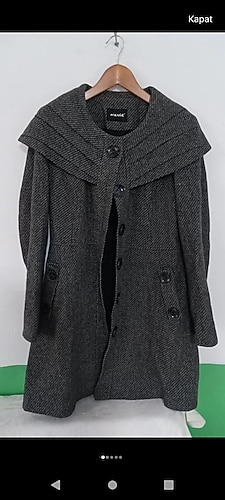 Düğmeli, yün kumaştan gri midi kaban. boy 90 göğüs 47. 40 beden. mixage marka. cepli düğmeli pileli ve omuz örtülü yaka astarlı kalın. çok şık bir ürün arka kemer 2 düğmeli . Diğer ürünlerimle birlikte alırsanız daha çok indirim yapıyorum pek çok ürün mevcut, mesaj yazın size özel indirimli siparişinizi hemen oluşturalım birlikte kazanalım güle güle giyin .