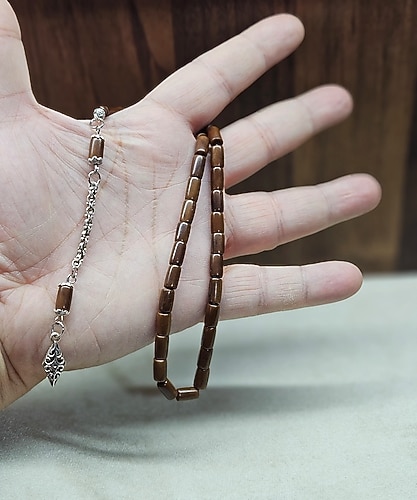 kesme kuka tesbih,gümüş detaylı zincire sahip tesbih. Sıkmalı ucunda zarif işlemeler bulunur. Günlük kullanıma uygundur.habbe ölçüsü:5.5x9.5mm dir.tesbih boyu:29cm dir.