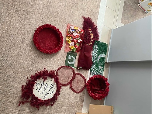 Sepet kına tepsisi kına mendili kına gelin ve erkek için sırt şeyi Fatmanur yazılı yelpaze Fatmanur yazılı tef 35 tane kına hepsi tek fiyat tertemiz çok kullanılmadı