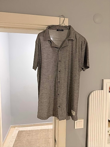 Keten kumaştan yapılmış, kısa kollu, düğmeli ve yakalı gri erkek gömleği. Rahat kesimi ve normal boyuyla günlük sokak stiline uygundur. Sıfır bedenime uymadı hiç bir zaman giymek nasip olmadı severek almıştım rubby marka esnek yapıya sahip bu fiyata yok