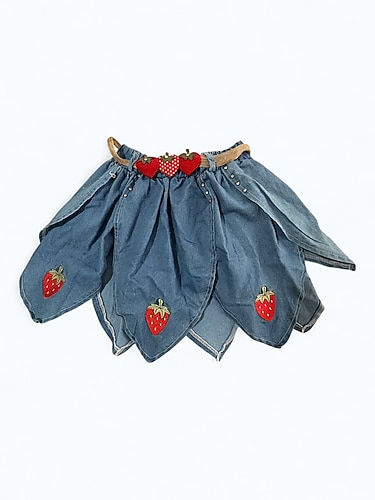 Kız Çocuk 5 Yaş Çilek Desenli Kot Etek