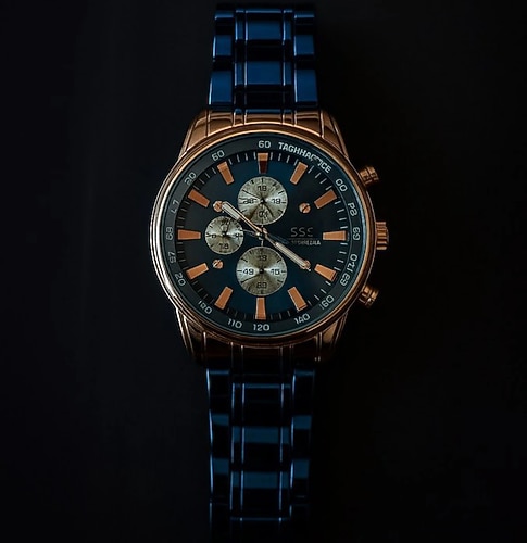 Klasik erkek kol saati, koyu mavi metal kordon ve çoklu alt kadranlara sahip yuvarlak kadran ile tasarlanmıştır. Geleneksel ve çağdaş tarzı birleştirir. Modeli Showtime'dır.