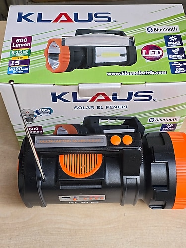 KE47725 KLAUS EL FENERİ SOLAR ENERJİLİ SARJLI RADYOLU 15W 8000 MAH USB GIRISLİ