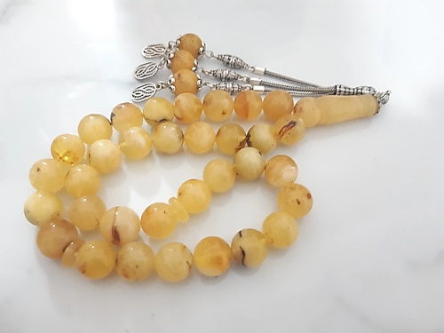 Özel hediyelik Kutusunda 1. Sınıf hatasız Koleksiyonluk Gümüş Püsküllü Orjinal Kaya Damla Kehribar Tesbih
