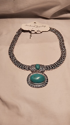 KOLYE, FİRUZE TAŞLARLA BEZENMİŞ,ALMAN GÜMÜŞÜ ZİNCİRLİ KULLANILMAMIŞ ÇOK ŞIK FİRUZE KOLYE