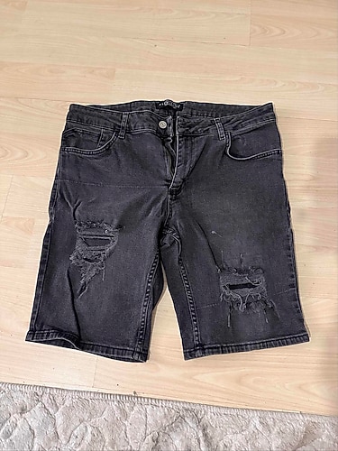 Bu siyah denim şortlar, rahat kesimi ve kısa boyuyla, yırtık detaylarıyla günlük rahat kullanıma uygun zahmetsiz şıklık sunar. Kot şort 36 beden sayılı giyildi geçen yaz