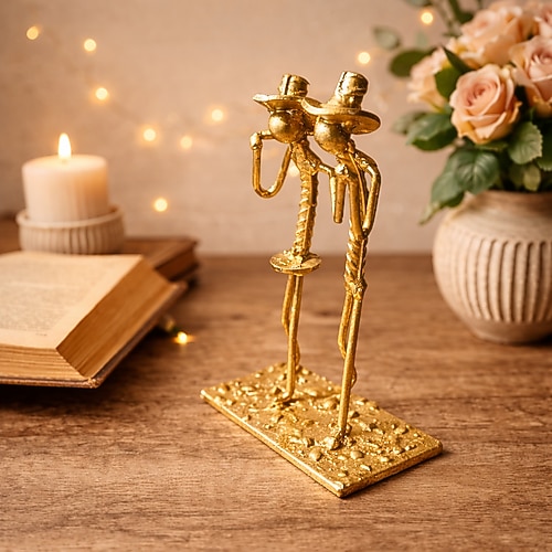 Bu el yapımı kovboy dans eden çift metal figür, western tarzı ve romantik temasıyla çiftler ve country dekor severler için özel bir dekoratif hediyedir.