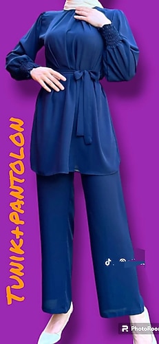 KUŞAKLI TESETTÜR İKİLİ TAKIM Ürün ÖzellikleriKumaş:kuin krep/SIK DOKUMAÜrün Uzunluk:73cm.  Pantalon Uzunluk: 98cm.Modeli