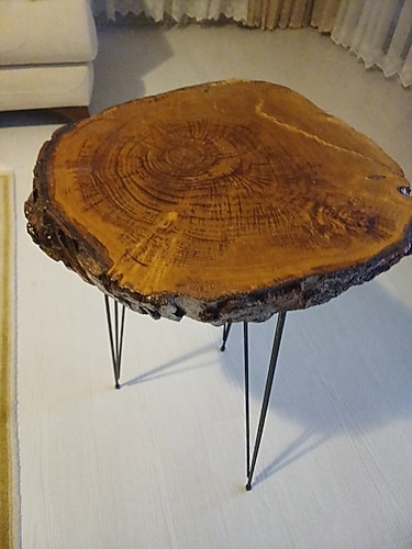 el yapımı metal ayaklı en az 30 cm çaplı oval kestane ağacından kütük yan sehpa