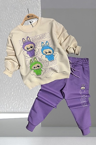 Satışını Yaptığımız Çocuk Kıyafetleri Sıfır Ürünlerdir.Üst Bisiklet Yaka Uzun Kollu Labubu Desenli Sweatshirt Alt Lastikli ve Bağcıklı Bel Eşofman Tam Kalıp Üründür.Bedenler 3/4 4/5 5/6 6/7 ve 9/10 Yaş Olarak Mevcuttur