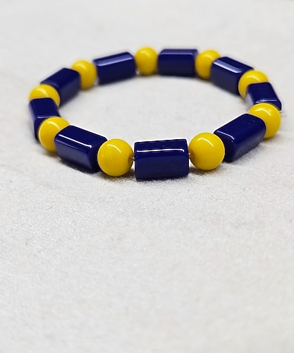 DOĞAL TAŞ BİLEKLİK Lacivert ve sarı renklerin uyumuyla tasarlanmış, boncuk detaylı şık bileklik. Günlük kullanım için ideal bir aksesuardır.