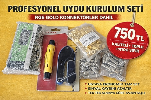 Profesyonel Uydu Kurulum Seti | RG6 Gold Konnektör + Aparatlar