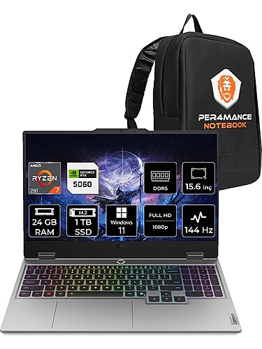 Lenovo Loq Amd Ryzen 7 250 24GB 1tb SSD RTX5060/8GB 100W 15.6" Fhd 144Hz W11H Taşınabilir Bilgisayar