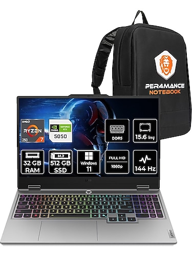 Lenovo Loq Amd Ryzen 7 250 32GB 512GB SSD RTX5050/8GB 100W 15.6" Fhd 144Hz W11P Taşınabilir Bilgisayar