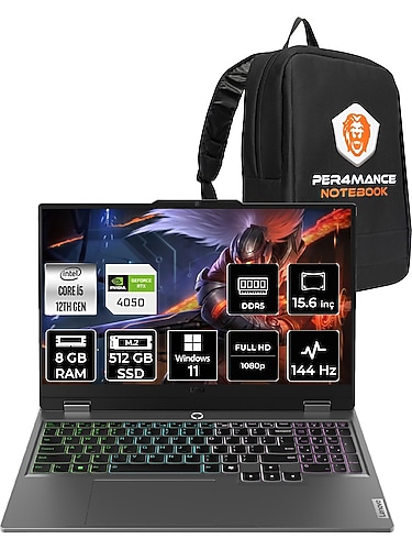 Lenovo Loq Intel Core I5 12600HX 8gb 512GB SSD RTX4050/6GB 105W 15.6" Fhd 144Hz Windows 11 Home Taşınabilir Bilgisayar