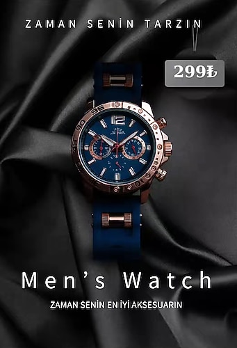 Model: Showtime Cam: Mineral cam Kordon: Silikon – koyu lacivert Stil: Şık / Günlük / Spor Fiyat: 299₺ Hedefimiz: "En uygun fiyat, en sağlam kalite."
