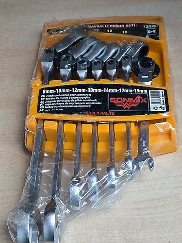 7 parça sonmix mafsallı circır anahtar seti profesyonel 8-10-12-13-14-17-19 mm