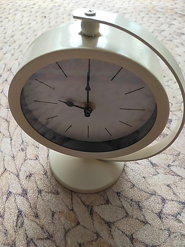 döner başlıklı krem rengi masa saati pilli sorunsuz çalışıyor